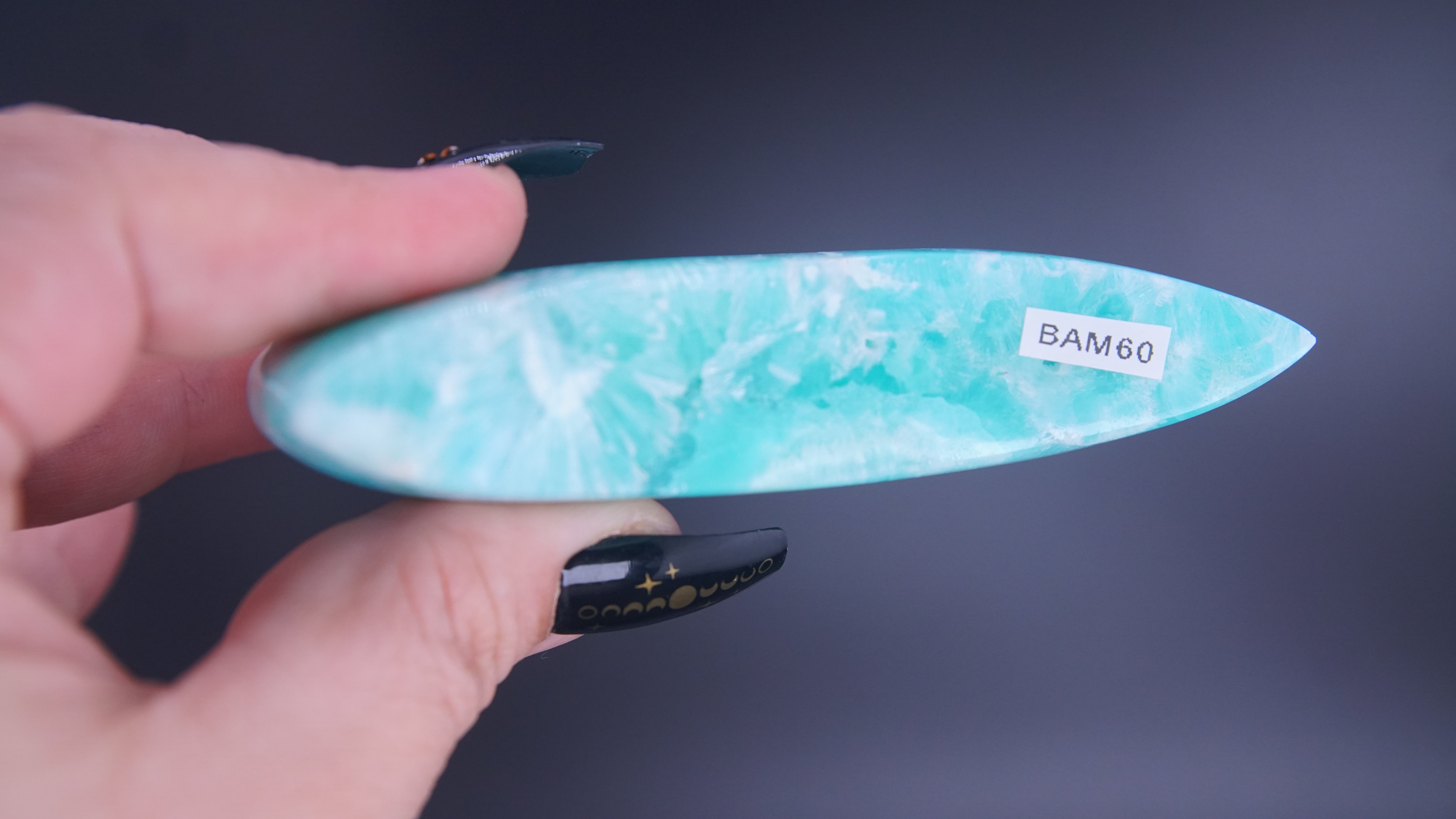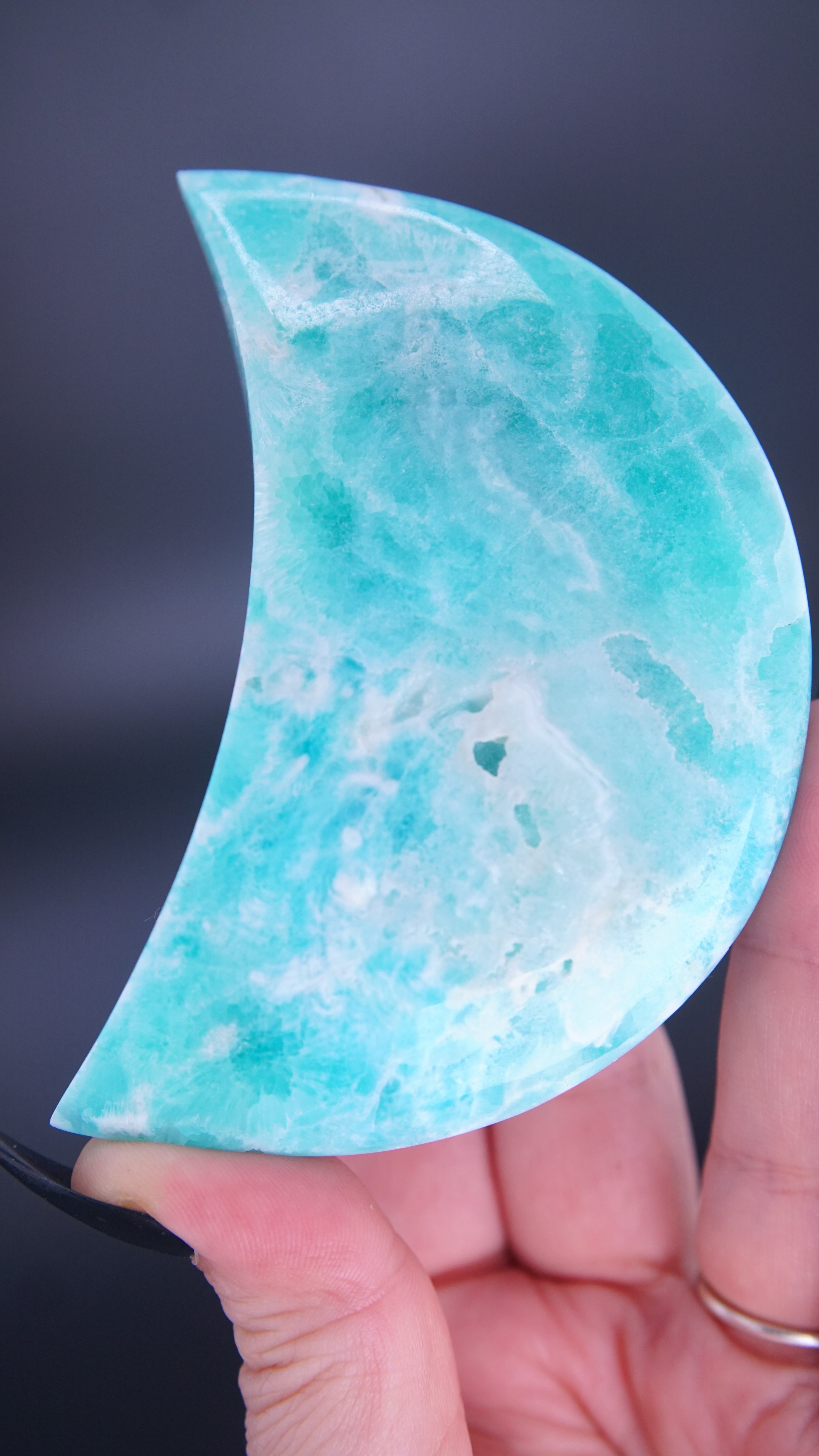 STUNNING and gorgeous color in this Blue Aragonite Calcite moon. Super high quality.