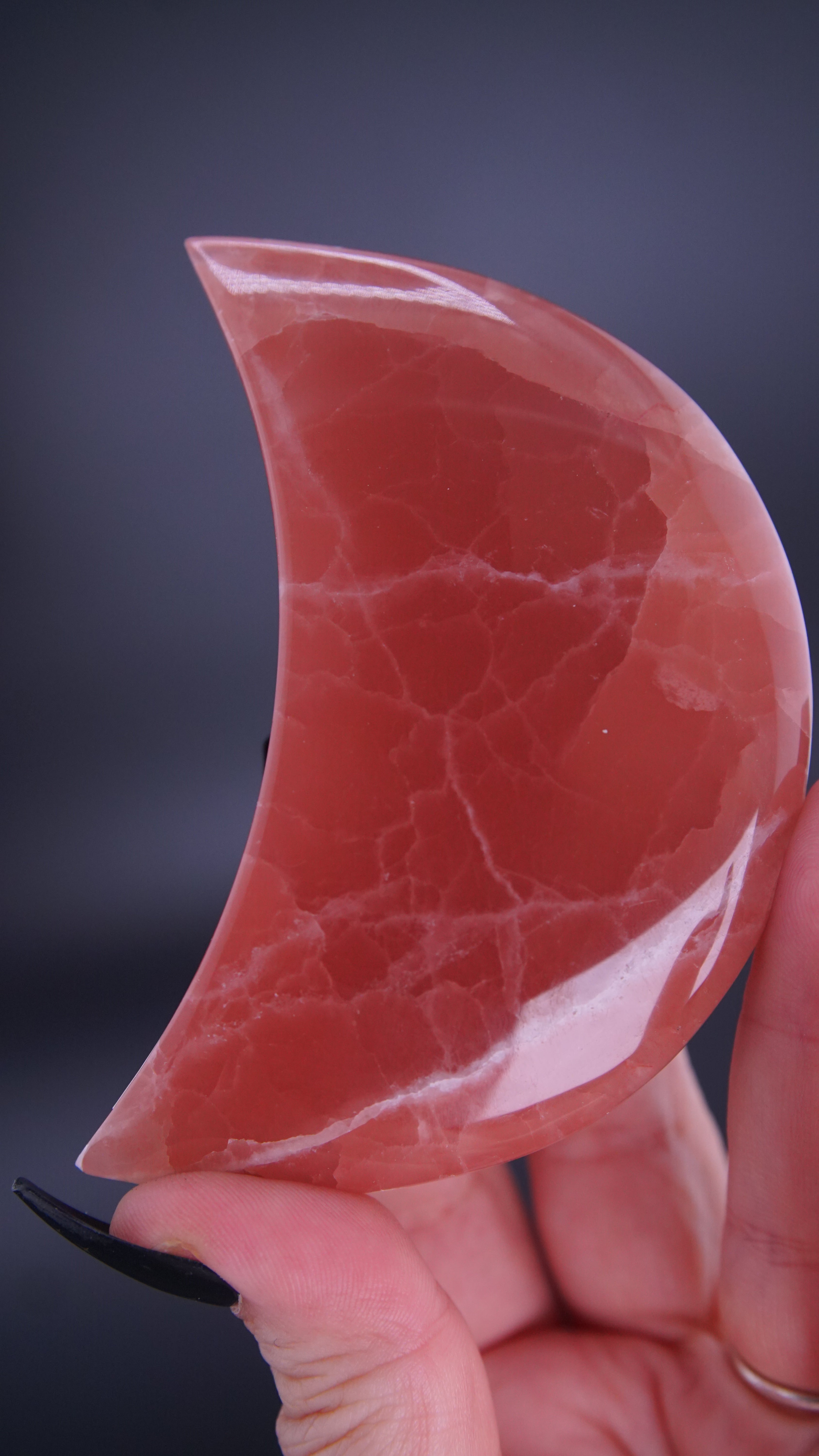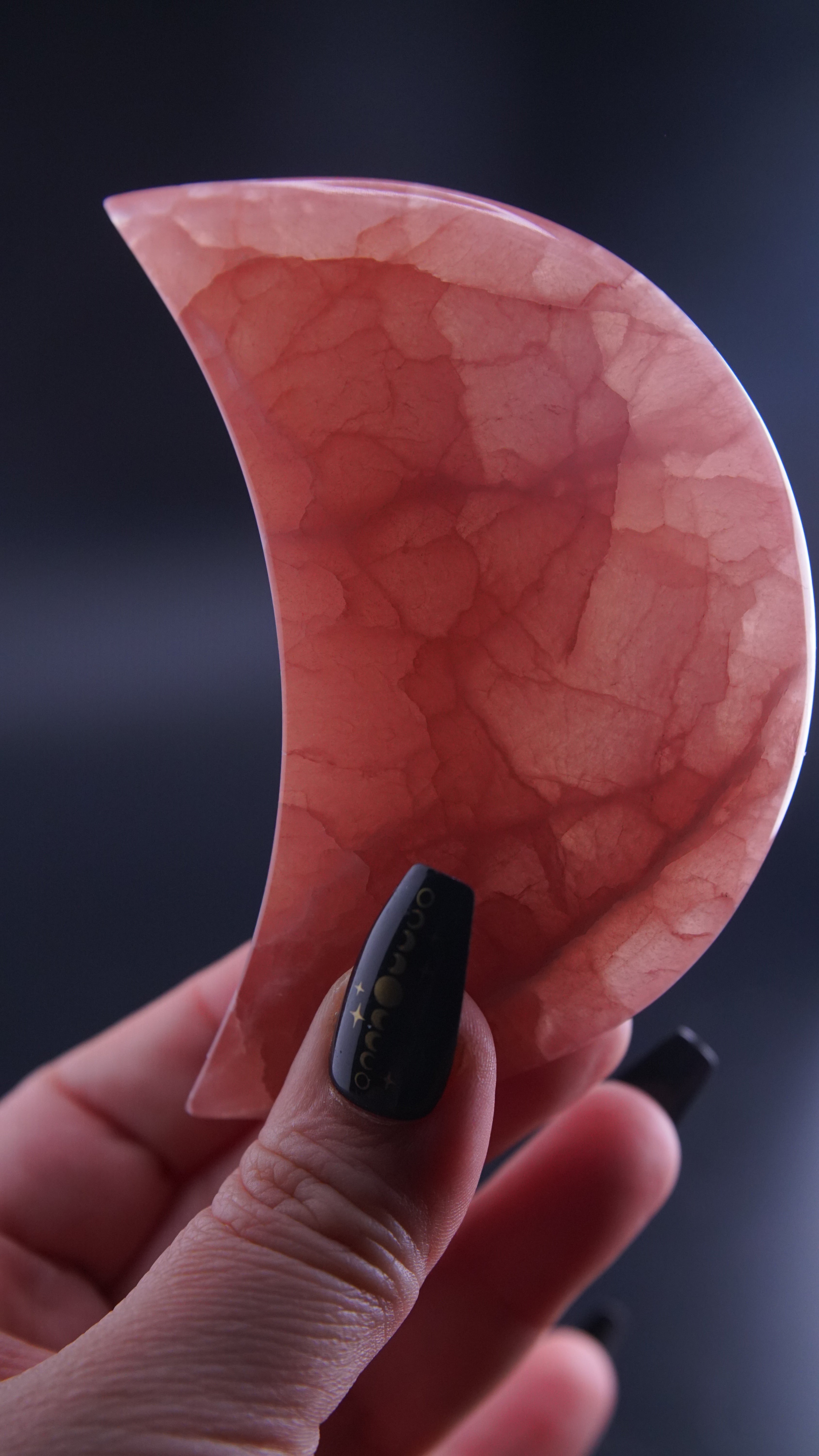 STUNNING and gorgeous color in this Rose Calcite moon. Super high quality.