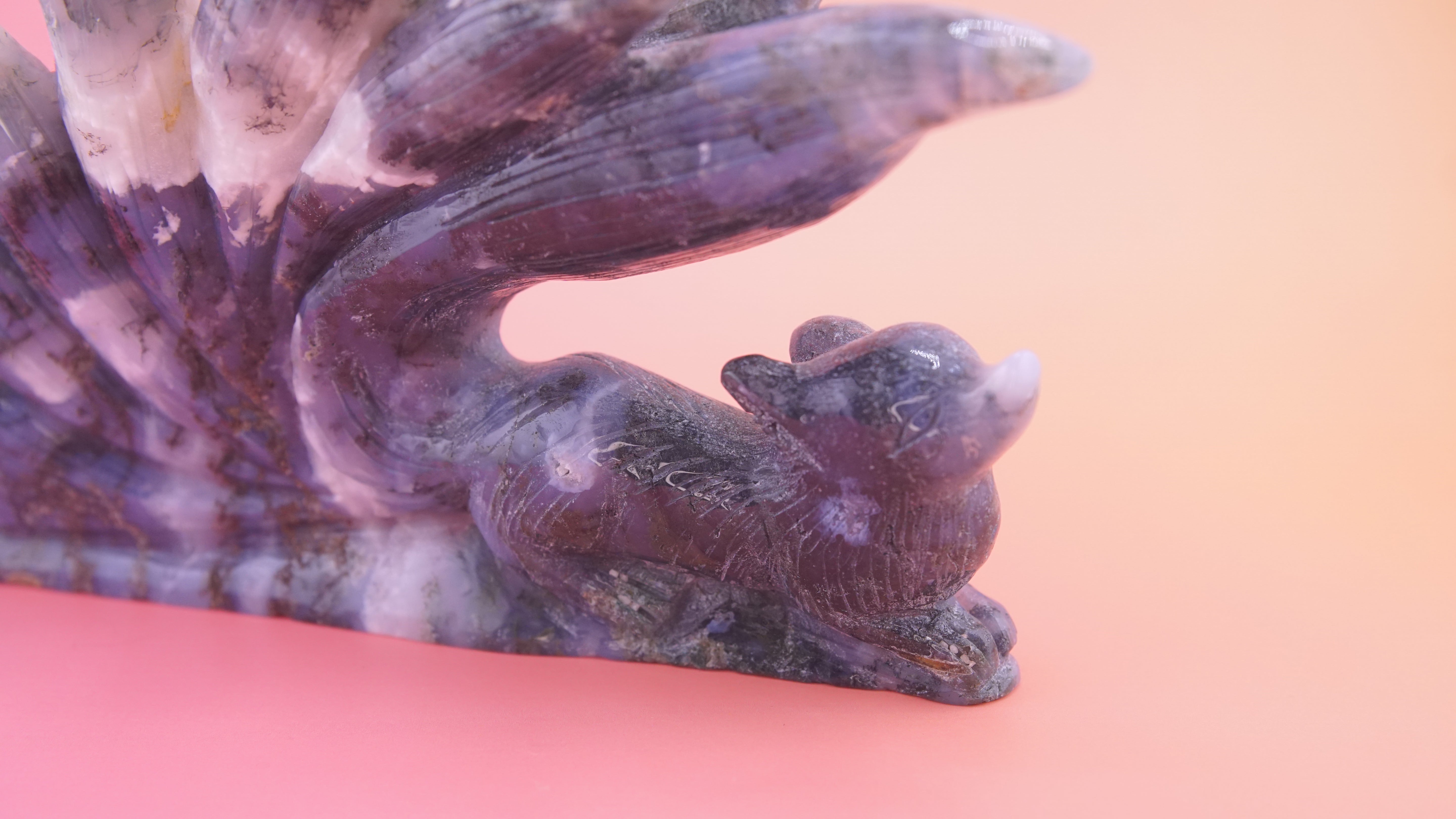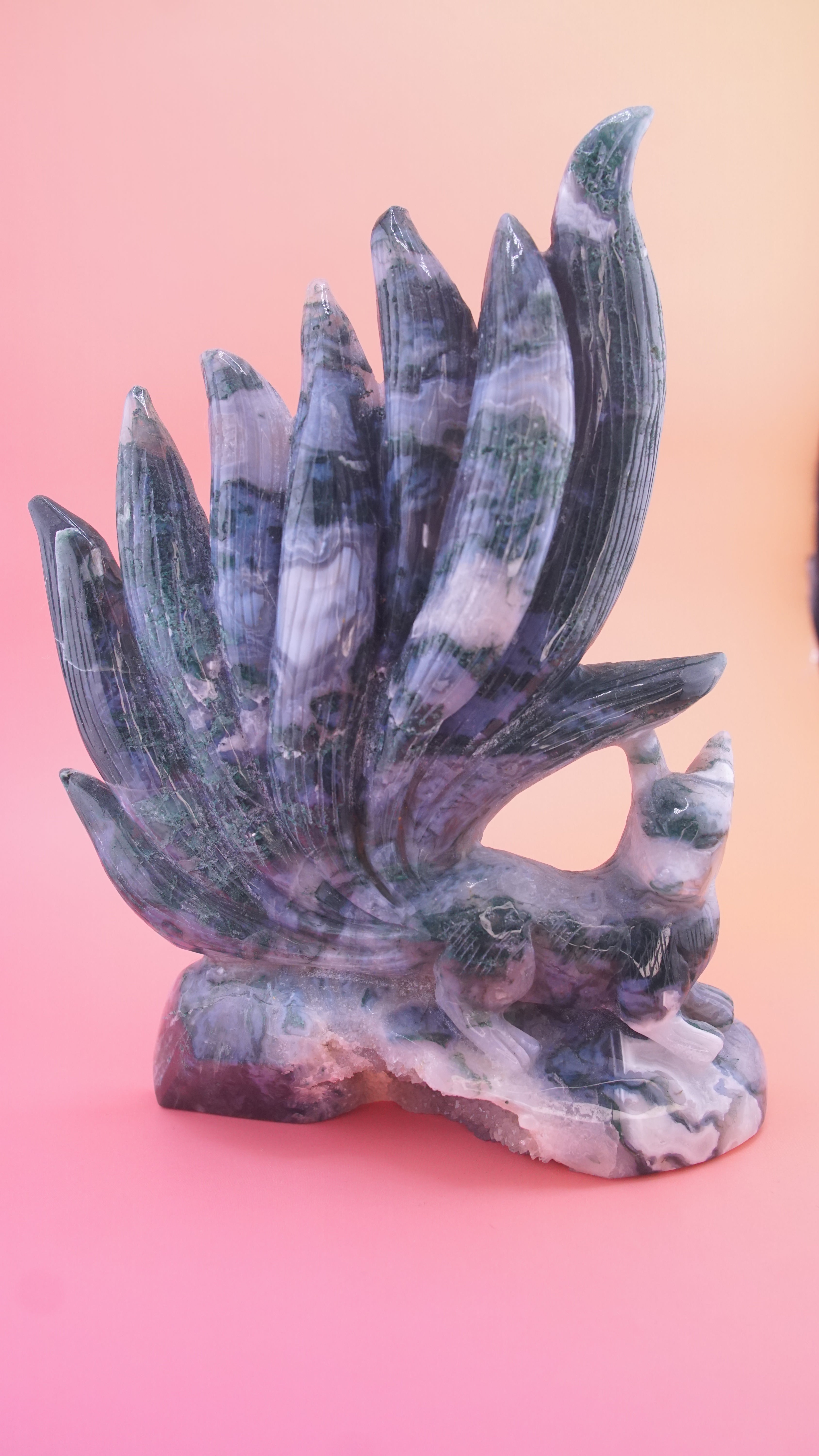 Blue Moss Agate Boutique 9 Tails Fox Carving | Crystal Carving Statement Piece