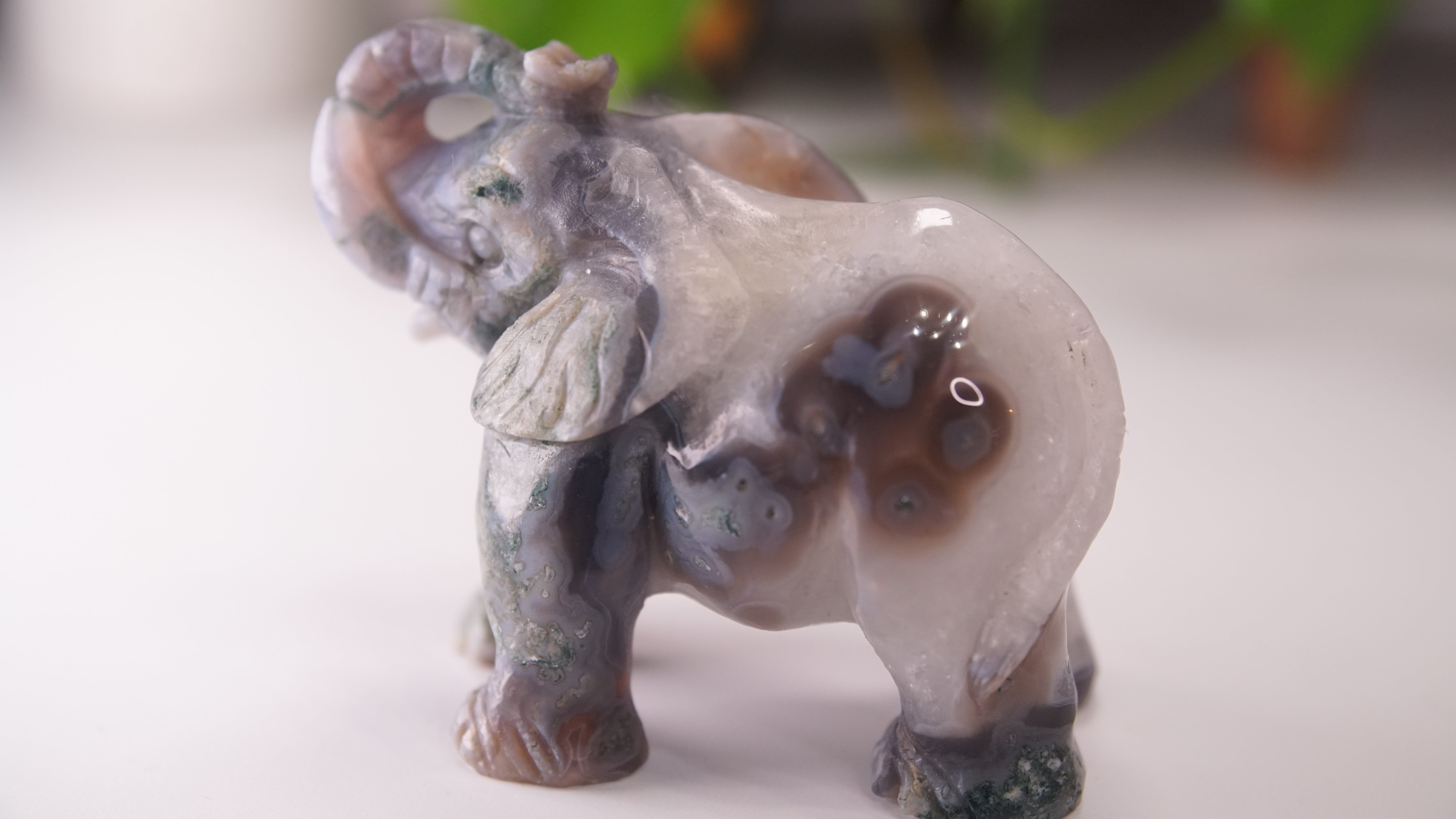 Druzy Moss Agate Boutique Elephant Carving | Crystal Carving Statement Piece