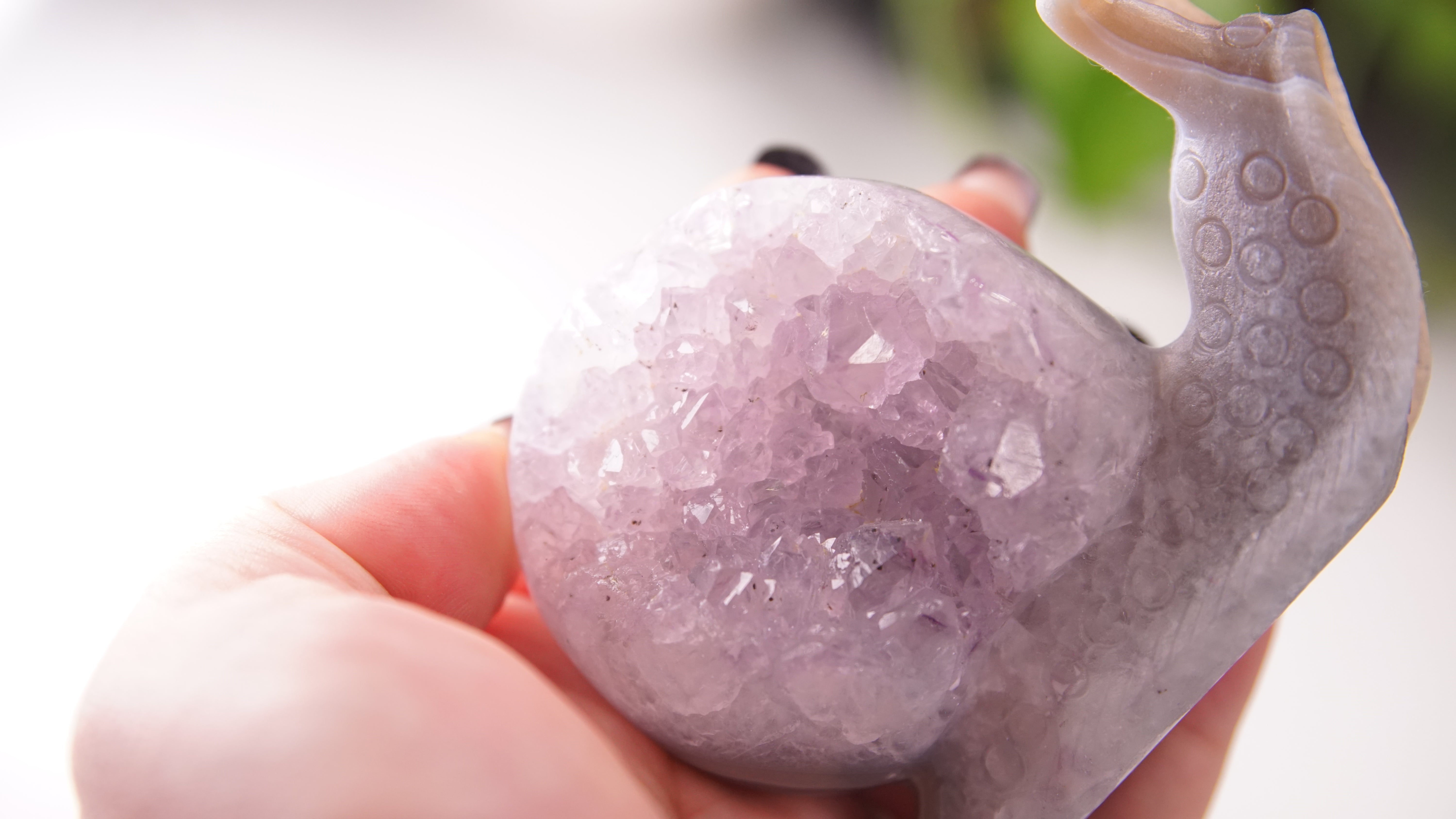 Gorgeous Agate Amethyst Boutique Snail Carving | Crystal Carving Statement Piece