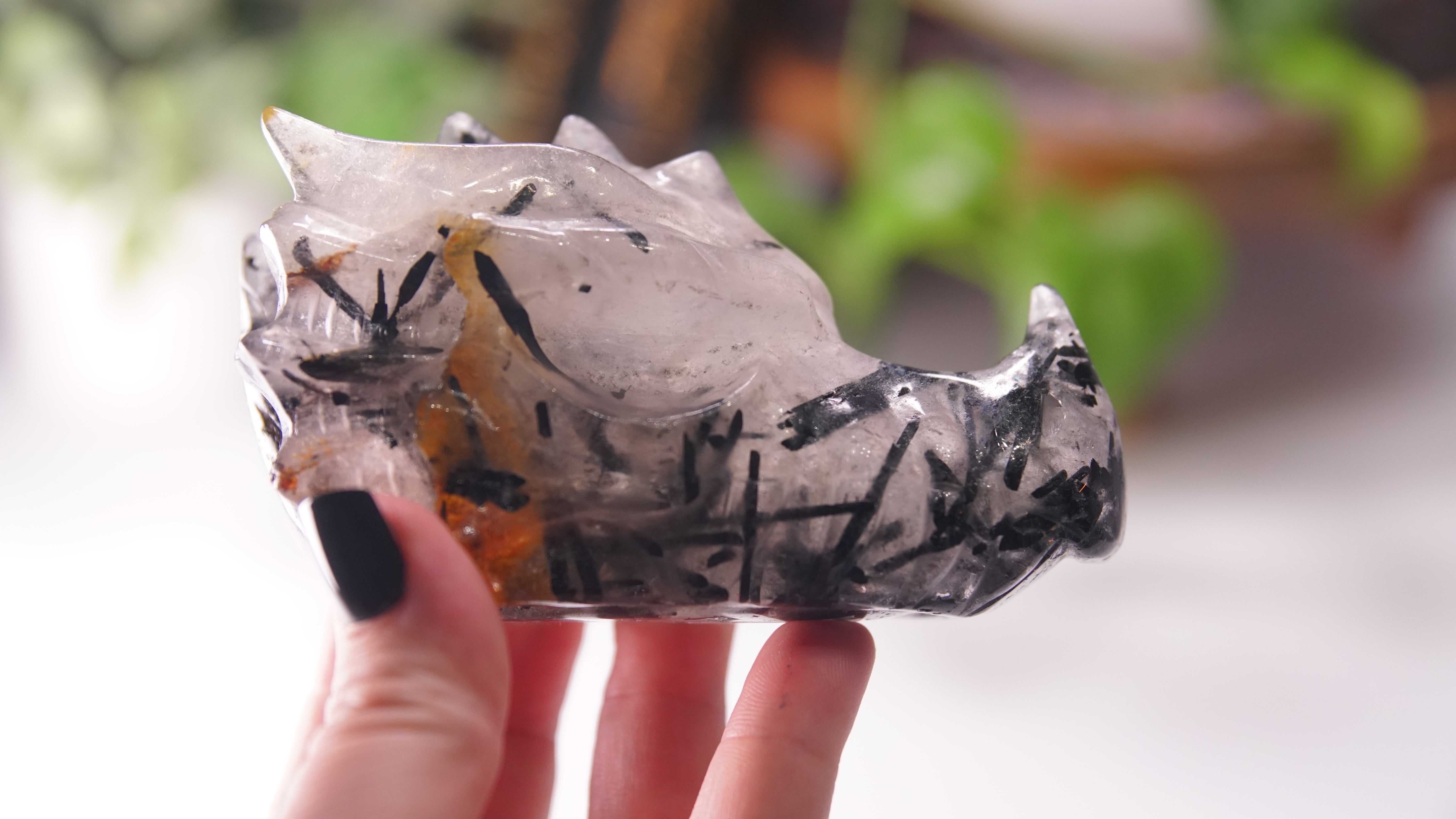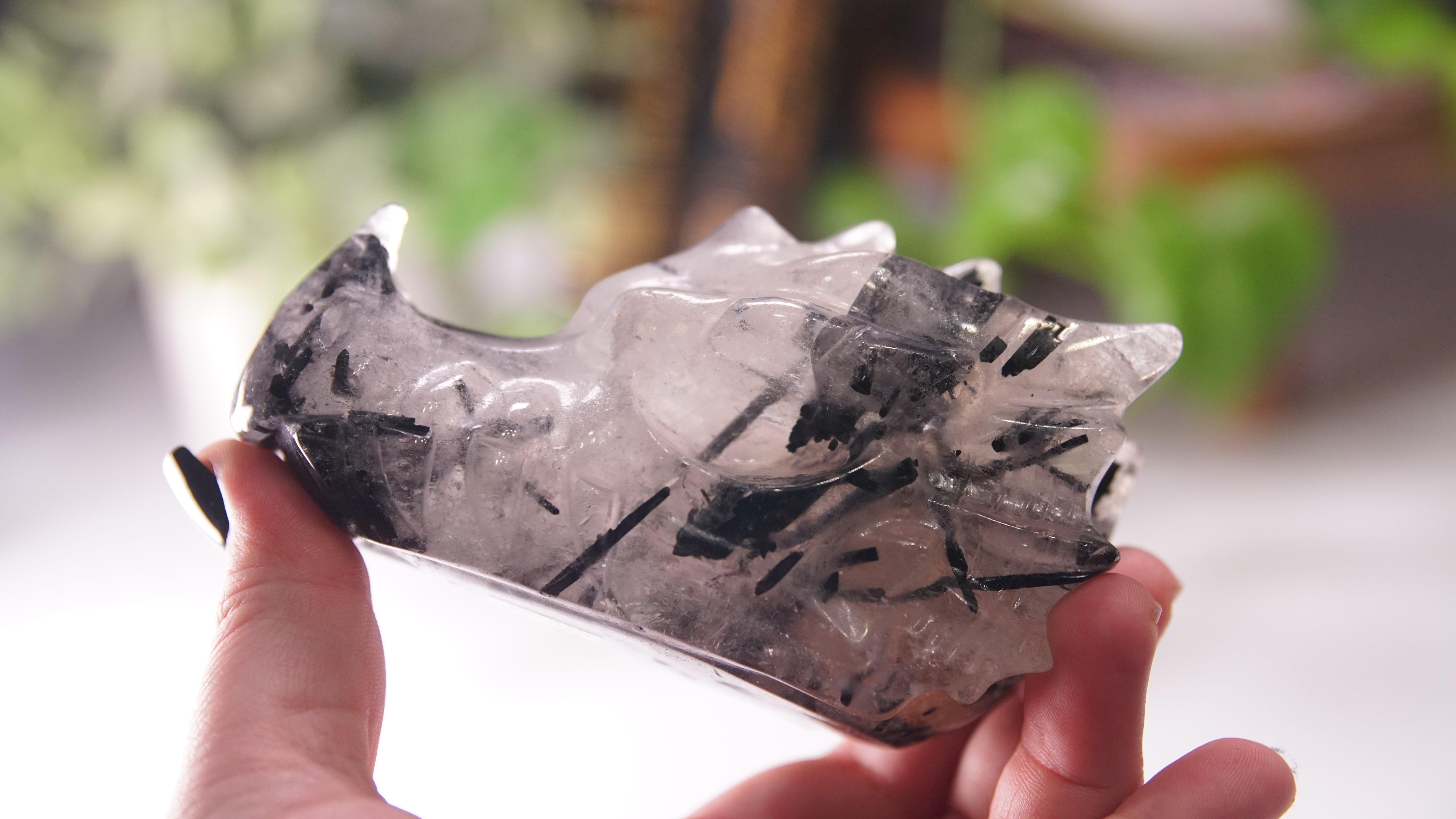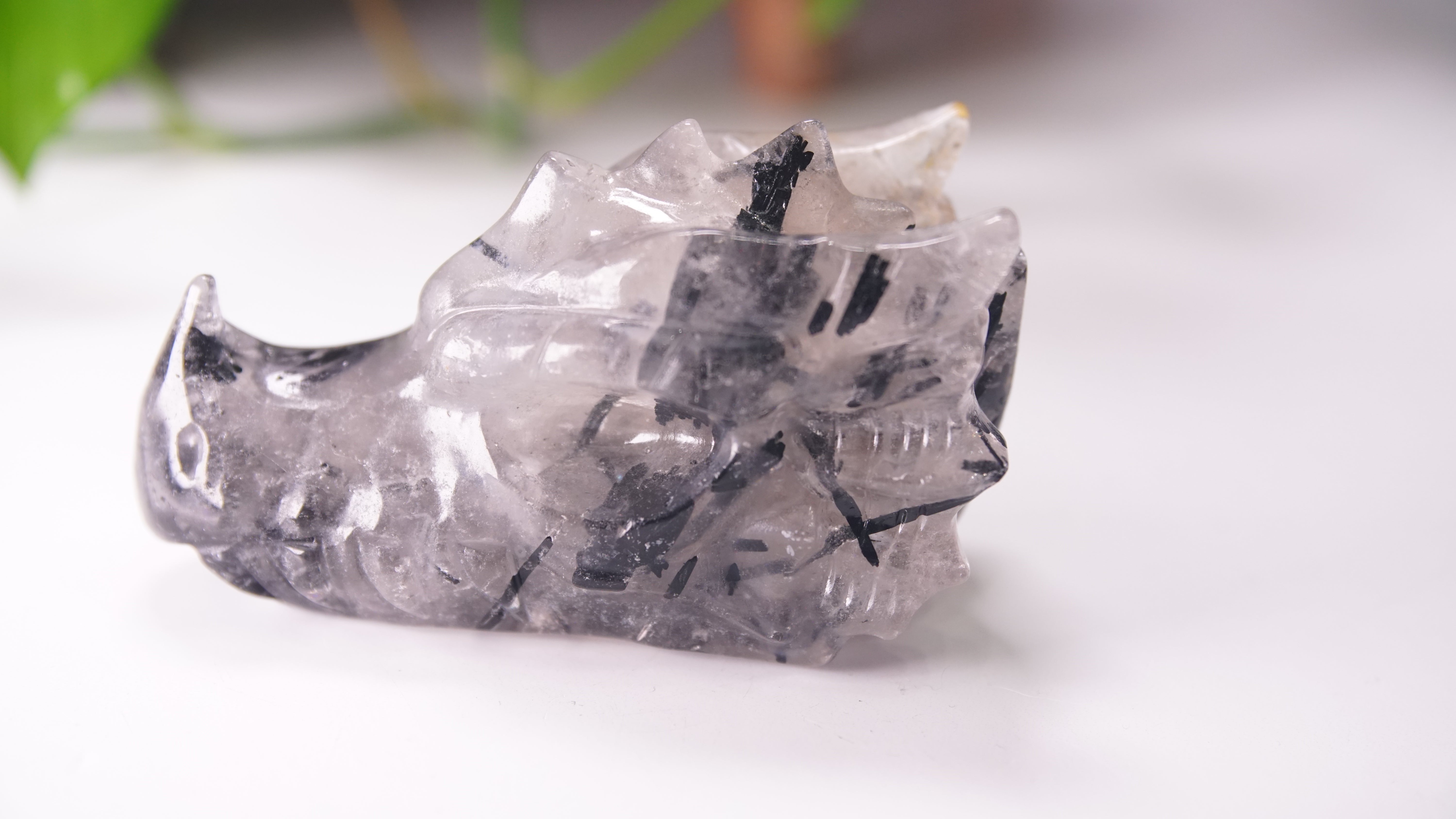 Gorgeous Black Tourmaline In Quartz Dragon Skull