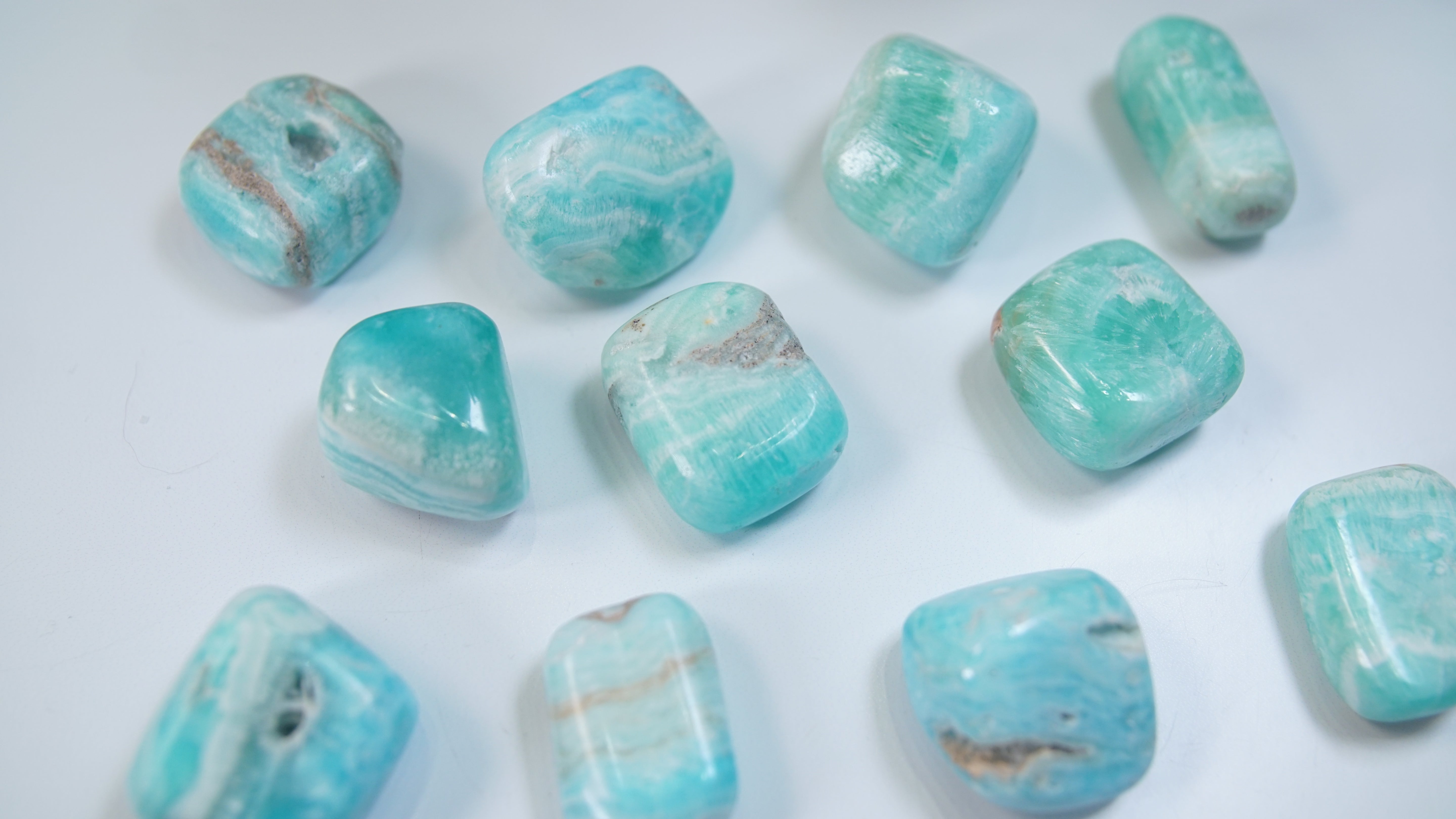 STUNNING and gorgeous color in these Caribbean Calcite tumbles. Super high quality.
