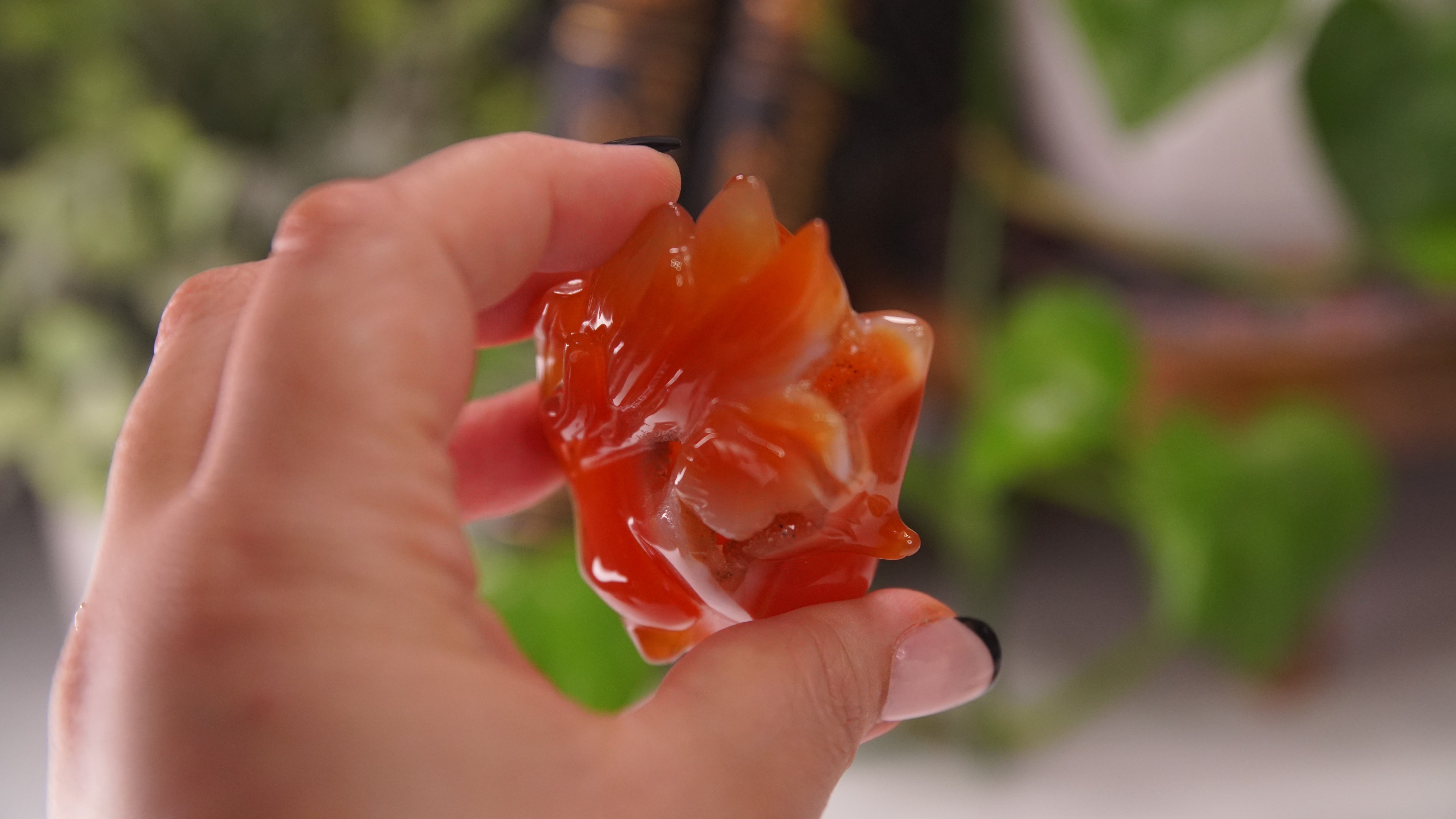 Druzy high quality carnelian boutique fox carvings.