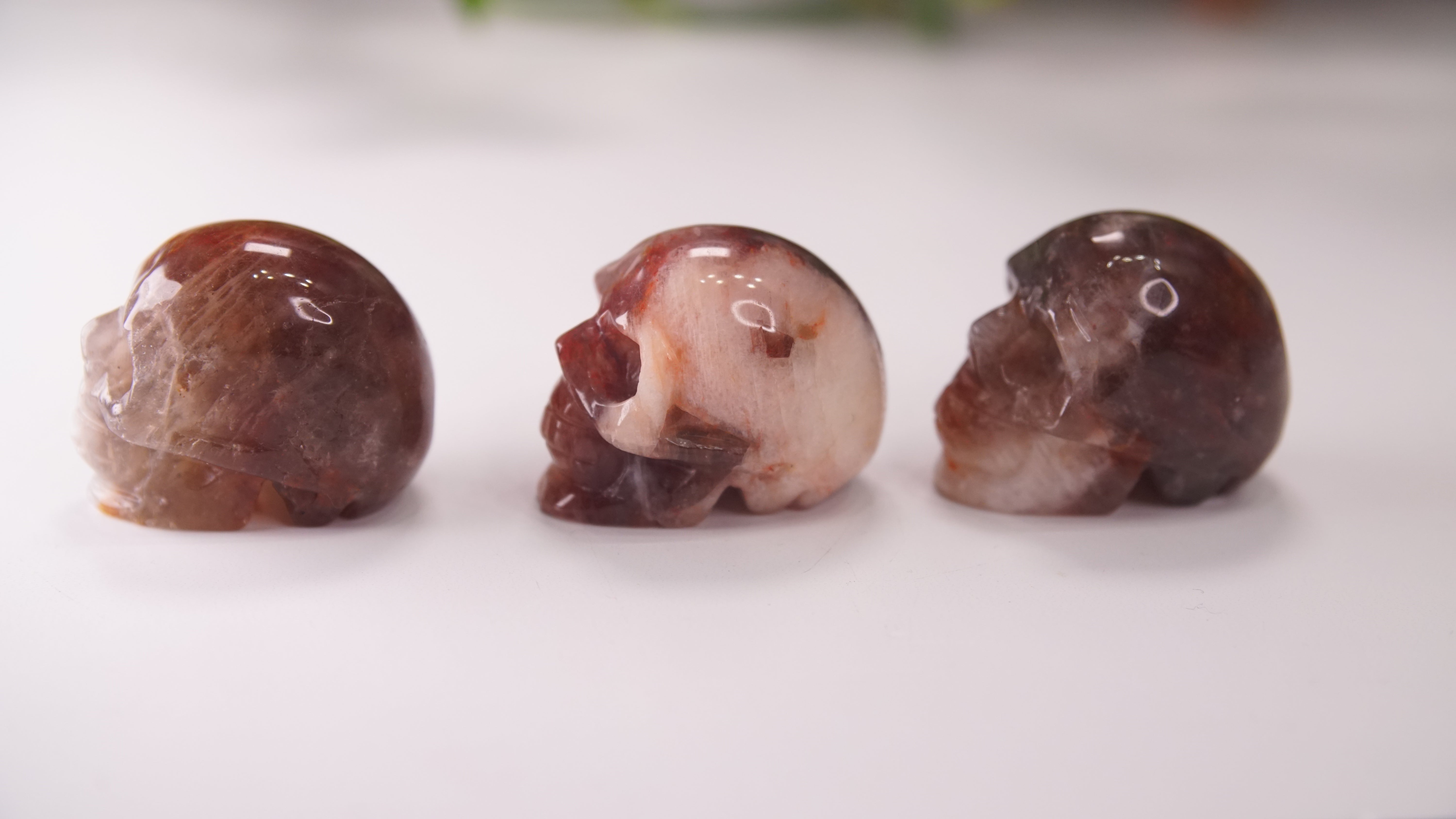 Gorgeous Fire Quartz With Moonstone Skull (Small, 2")